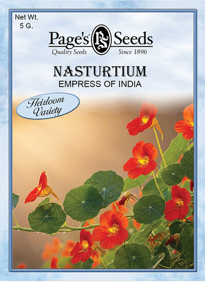 These easy to grow heirloom flowers with their deep blue-green foliage and red blossoms attracts hummingbirds who love to visit the long-spurred blossoms. As a wonderful bonus, both the flowers and leaves are edible with a spicy watercress-like taste. Culture: Sow outdoors 1-2 weeks after average last frost. Not recommended to start indoors as seedlings do not transplant well. Thrives in full sun or light shade. Seed requires darkness to germinate. Soak seed in water for 12-24 hours before sowing.