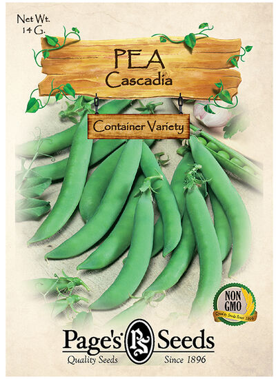 ‘Cascadia’ has 3″ long, deep green, thick, juicy pods that are very flavorful. Serve raw with dip, steam, or stir fry. Short, 30″ vines are self-supporting. Resists powdery mildew and pea enation mosaic virus, making it an excellent choice for late summer sowing as well.