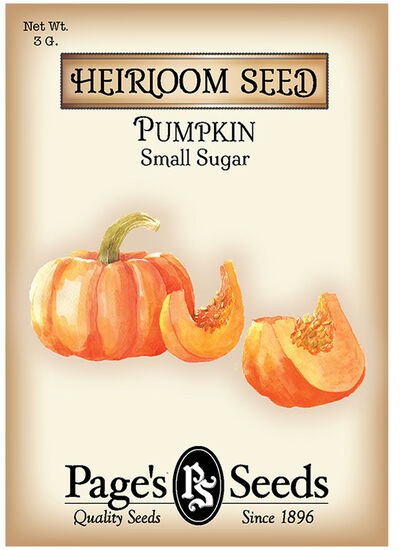 Dating back to 1863, sometimes this old variety has been known by: New England Pie Pumpkin, Northeast Pie, Boston Pie, Sugar Pie, Early Sugar Pie, and Sweet Sugar. Small Sugar pumpkins have very smooth textured, bright orange flesh and the finest flavor for making mouthwatering pies. 110 days.