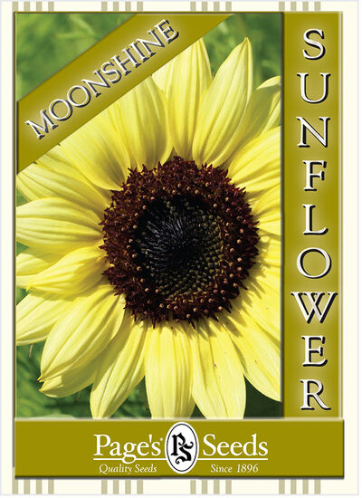 Moonshine Sunflower blooms with glowing, pale yellow petals surrounding dark centers. The pale color shines both day and night atop robust plants growing 6-8 feet tall. “Moonshine” was bred as a cut flower, with sturdy stems and a base-branching habit that provide large, abundant flowers and full vases all summer long.